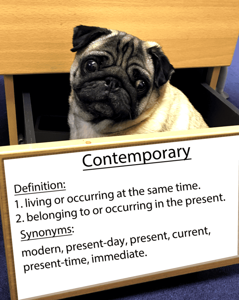 Read moreContemporary Definition: 1. living or occurring at the same time. 2. belonging to or occurring in the present. Example: 1. “the event was recorded by a contemporary…