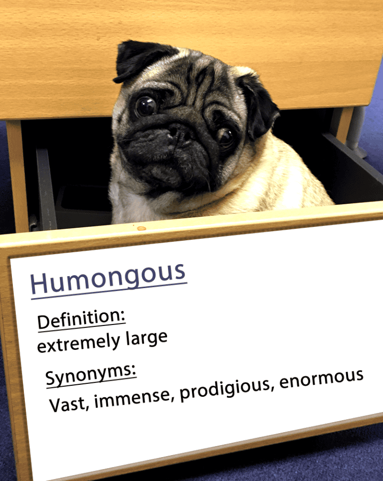 Read moreHumongous; Definition: Extremely Large Synonyms: Vast, Immense, Prodigious, Enormous. Example: “The Humongous caterpillar, ate his way through ten whole apples!”