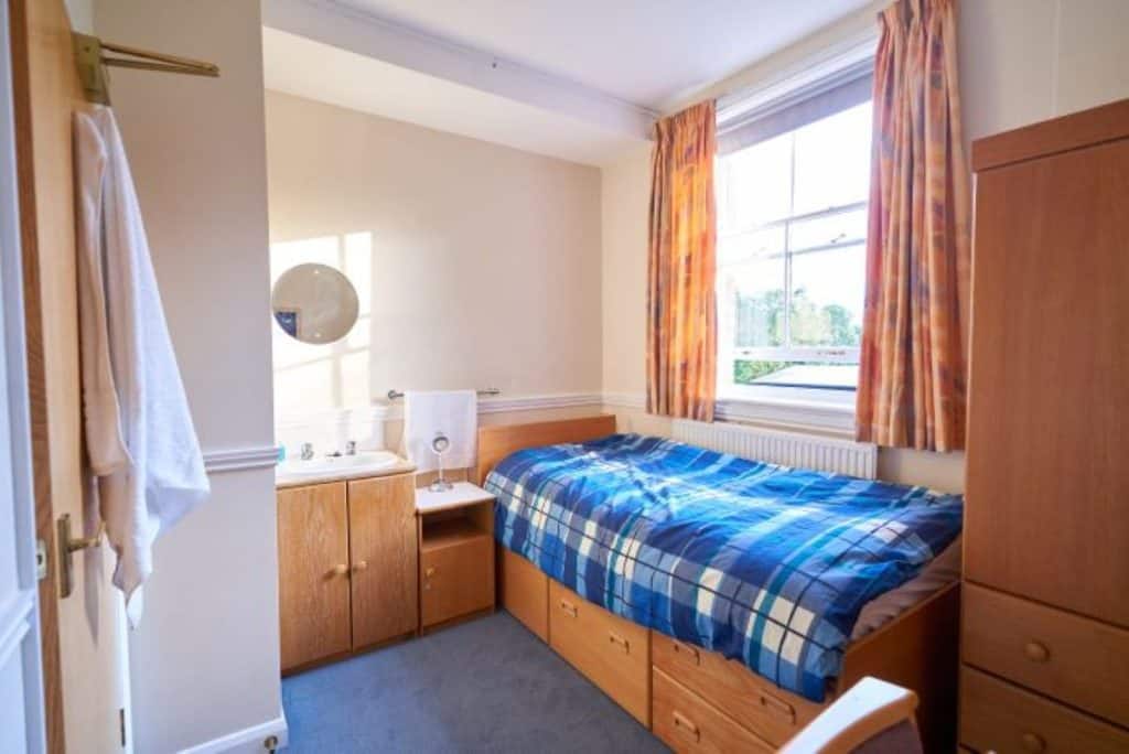 Two accommodation options available: Westwood House, a Victorian mansion in wooded grounds, offers traditional boarding with single to three-bed dorms and shared facilities. The modern Sixth Form House features single ensuite rooms with private bathrooms, plus lounge, TV room, kitchen, IT suites, and music rooms. Full-board accommodation includes breakfast, lunch, and dinner daily. Special dietary requirements including halal, vegetarian, and gluten-free options are catered for. Separate male and female buildings ensure comfort and privacy.
